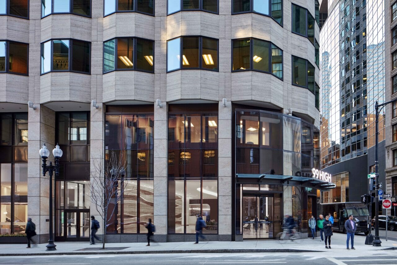 SGA redesigned the lobby of 99 High in 2019, repositioning the entry to the corner of High and Congress Streets, and incorporating warm materials and biophilia into the space. SGA plans to occupy their new Boston office in December of 2023.